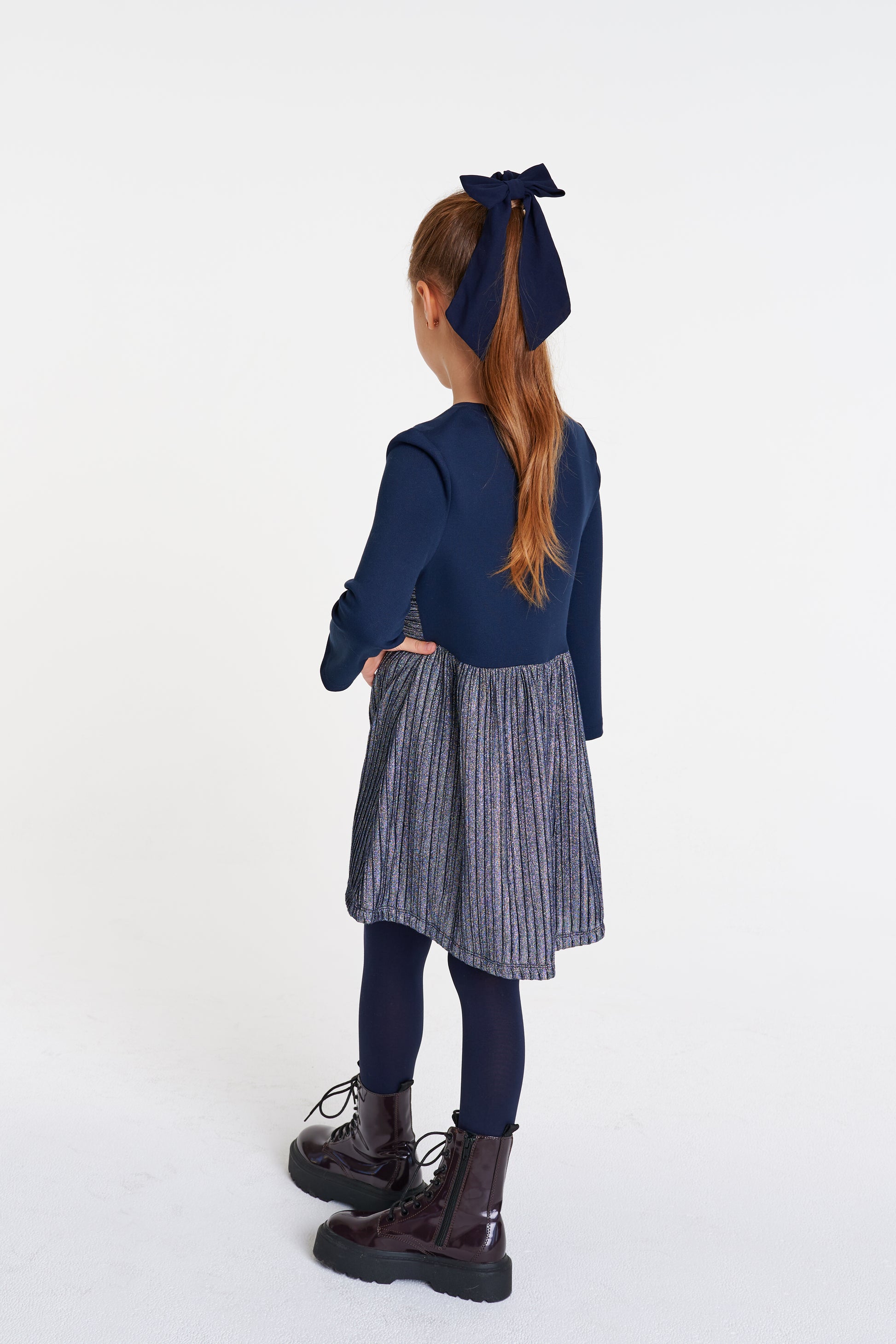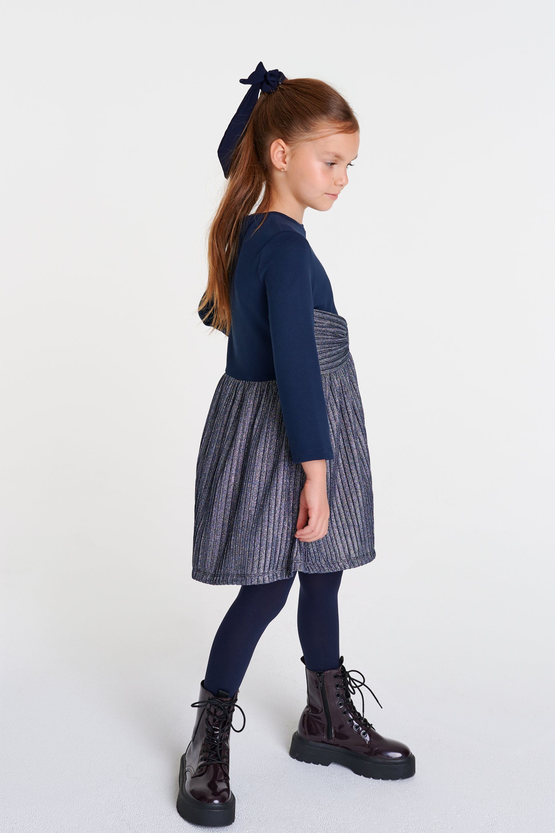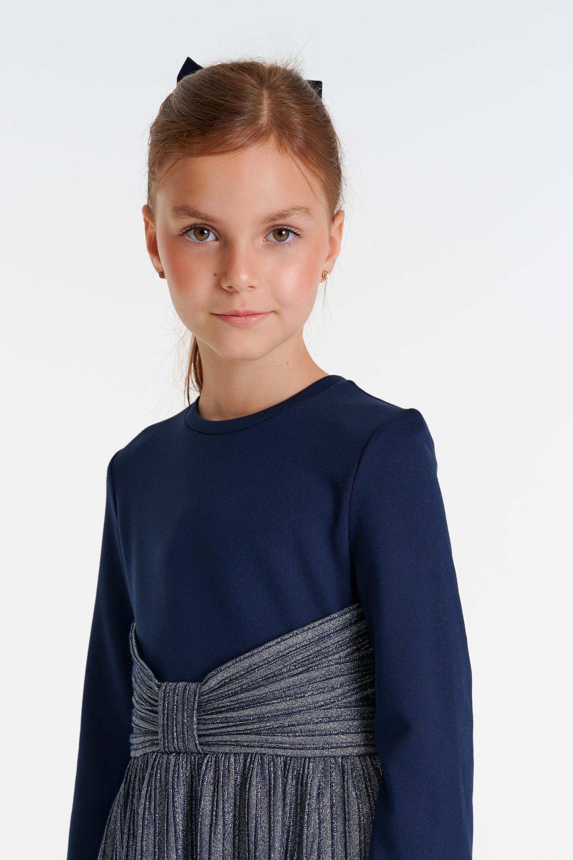 Navy Shimmer Bow Waisted Dress DSL0463