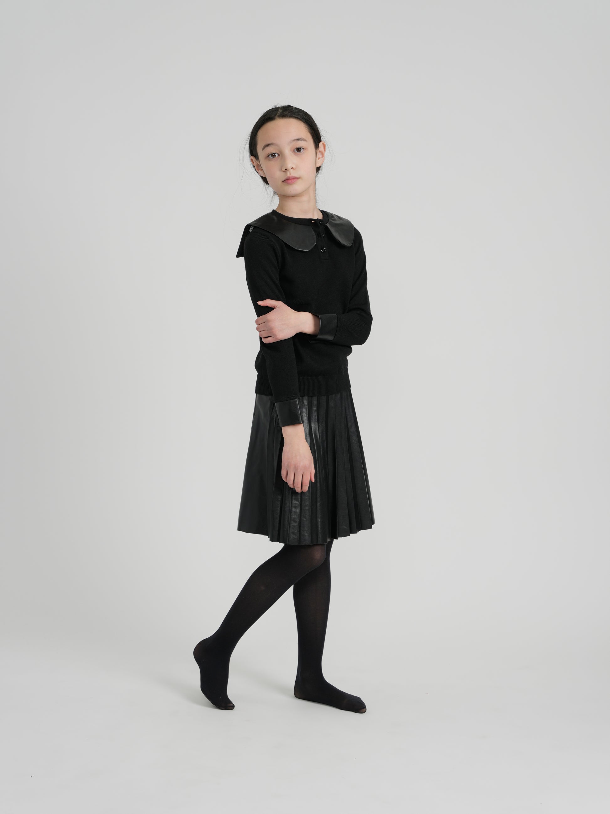 Leather Mix Pleated Skirt RFW2277-B