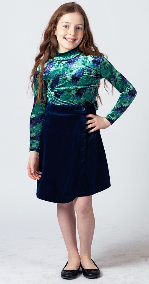 M-5816 Velvet Navy/Green Floral Mockneck