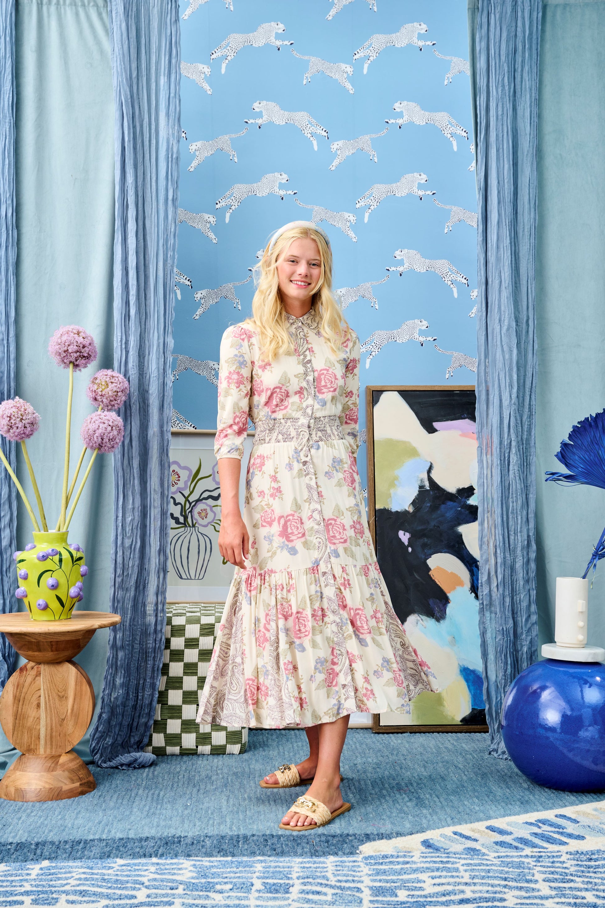 Cream w/ Large Floral and Paisley Print Dress T-1040